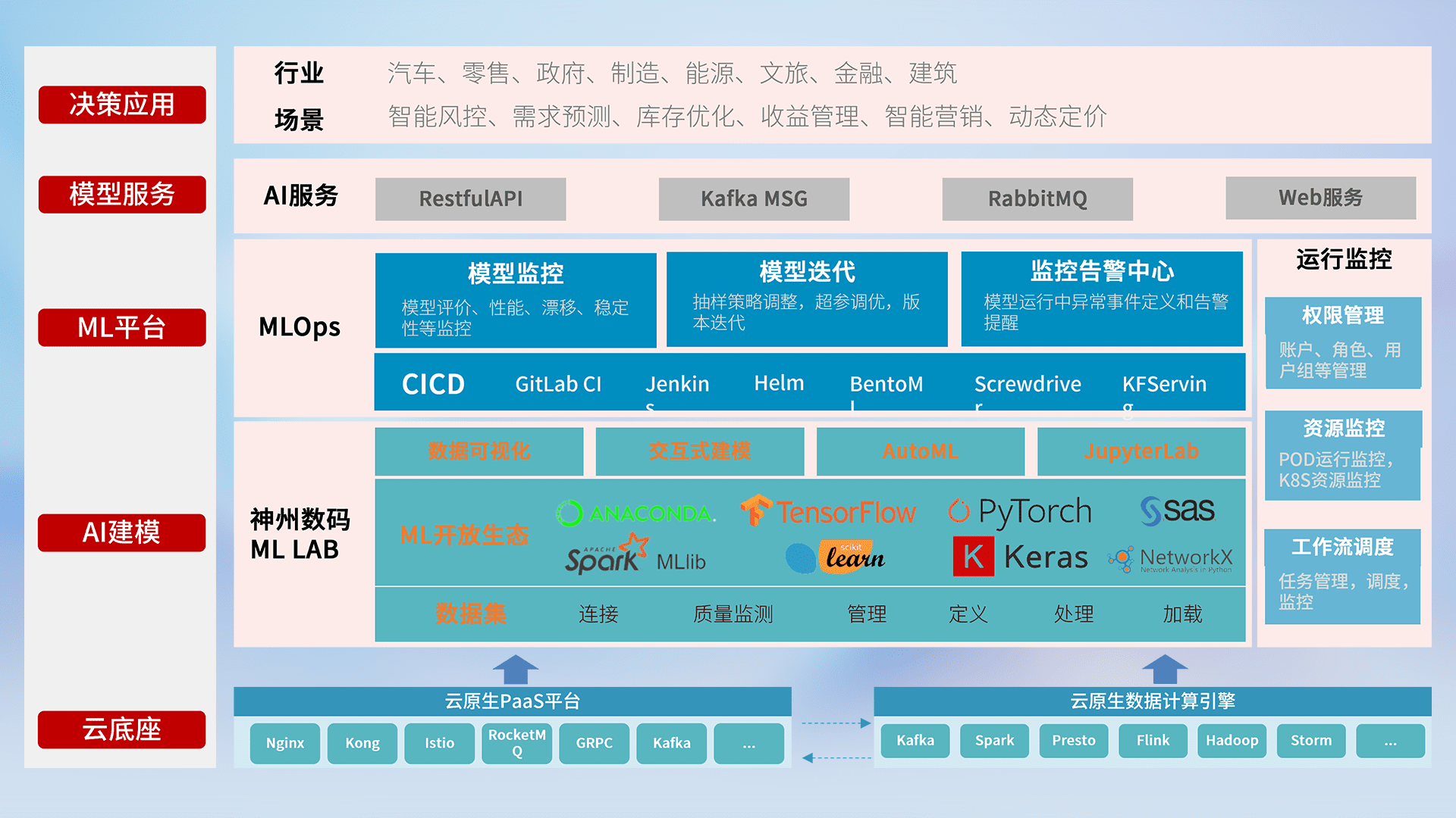 数据+模型双引擎驱动,,面向智能服务场景,,,,快速灵活利用AI技术,,,支持业务决策,,,,助力企业智能化转型破局。。。